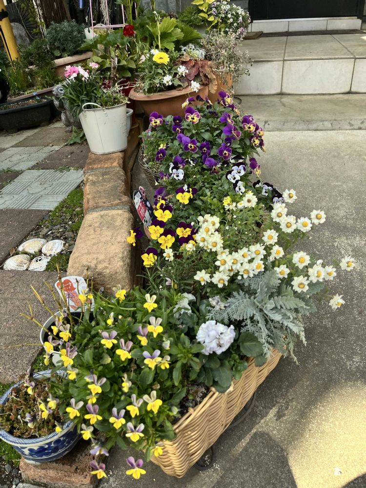 自宅🏠のキンセンカやビオラも次々に咲いています💛🩷🤍💛💜❤️☘️