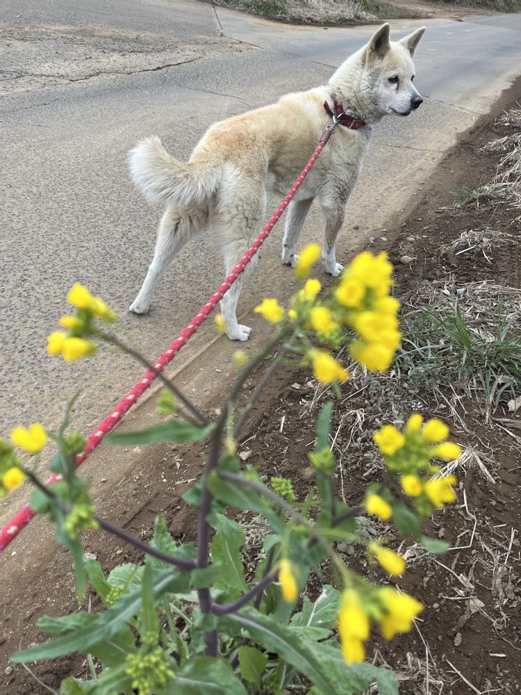 まゆちゃん🐕とお散歩で、毎年咲いてくれているご近所さんの菜の花畑