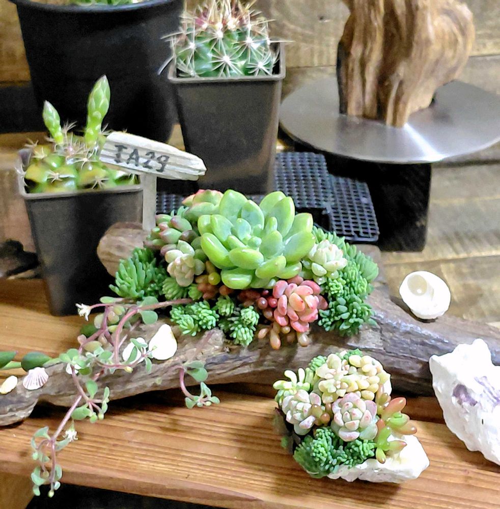 多肉植物と流木の寄せ植え