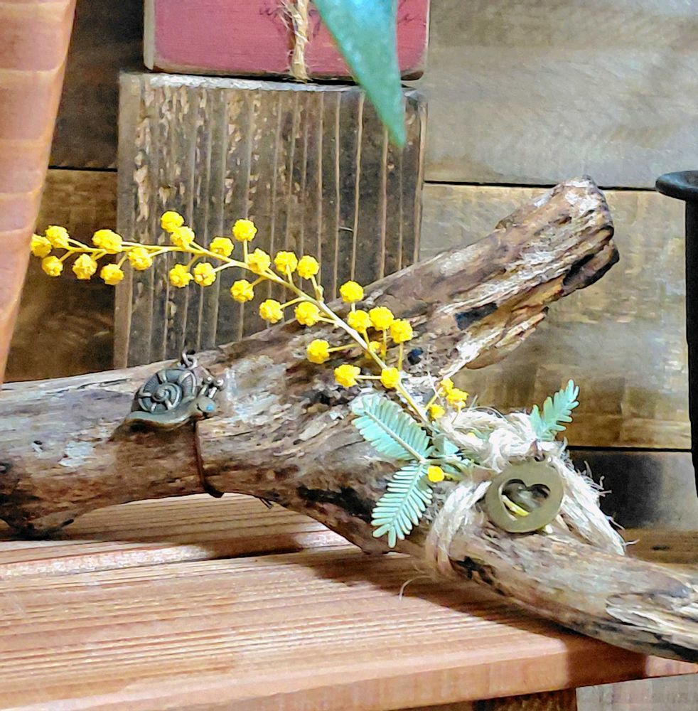 流木に貝殻〜ミモザ🌊💛 ̖́-