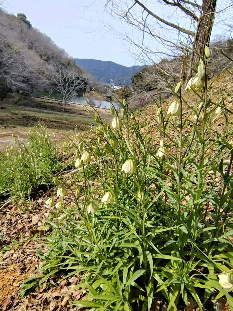 重川池の土手に咲くバイモが見頃を迎えていました✨💛🌿