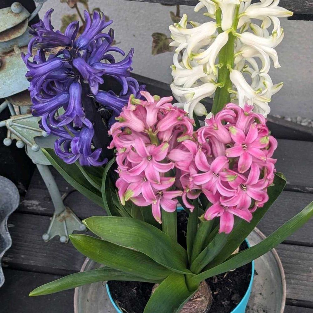 ④ご近所さんの3色のヒヤシンスのお花🤗💕