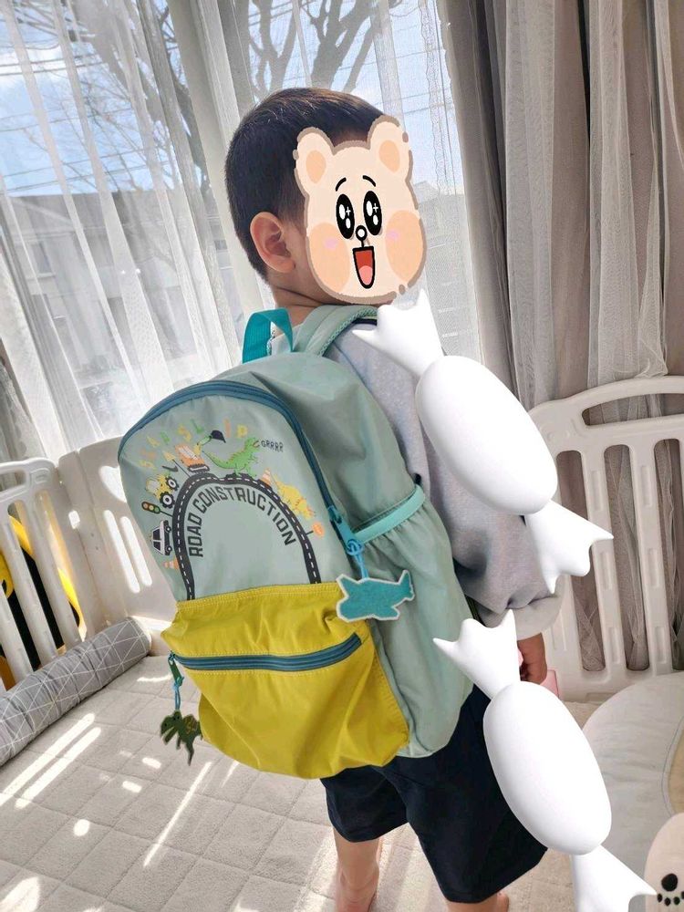 4️⃣🧒お兄ちゃん❣️大きな入園用リュック背負って得意顔😃😄😁✌️ 幼稚園のジャージ飴の雲で隠したら、娘に笑われました😅💦