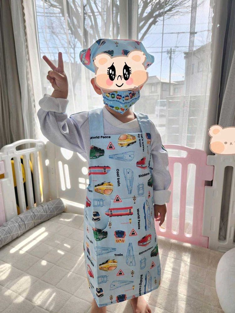 5️⃣🧒お兄ちゃん❣️調理実習用エプロンやっぱり大きいね😋