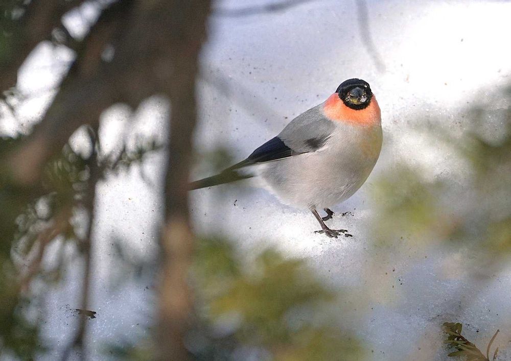 雪食べてたウソ♂くん😚