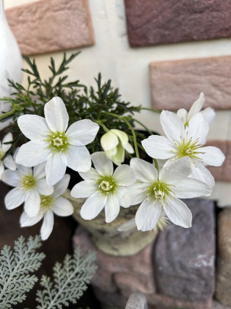 比較的小輪の白い花が早春に咲くクレマチスです。