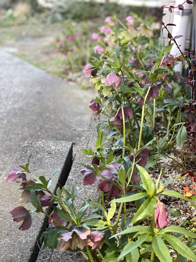 クリスマスローズ沢山咲いてお出迎えされると目が止まり👀嬉しくなりますね🤗