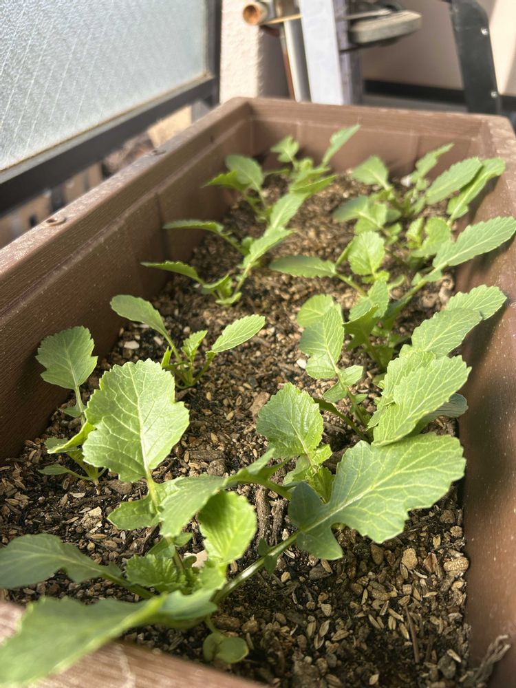 ベランダでは葉っぱ食べる用の大根🌱育ててます❣️