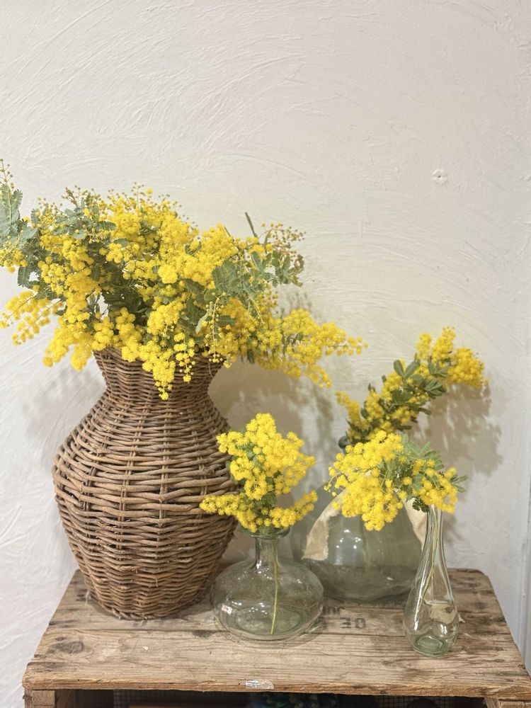 とりあえず穴が空いているものがあればミモザを入れてます🤣