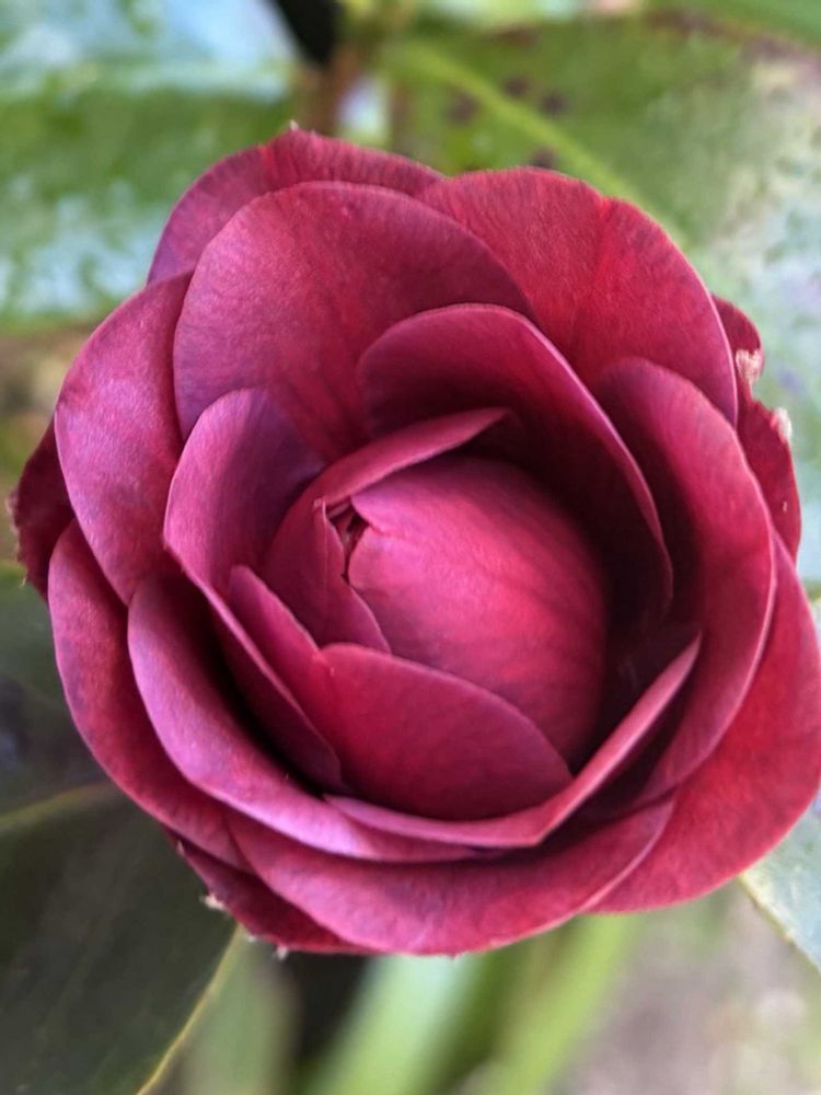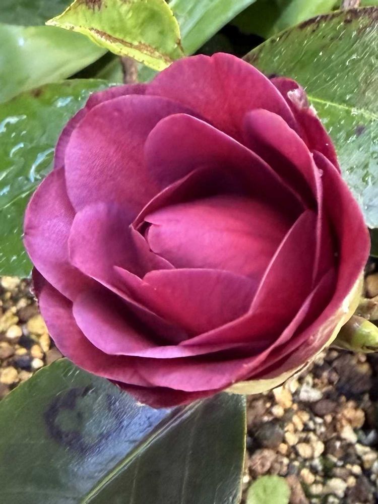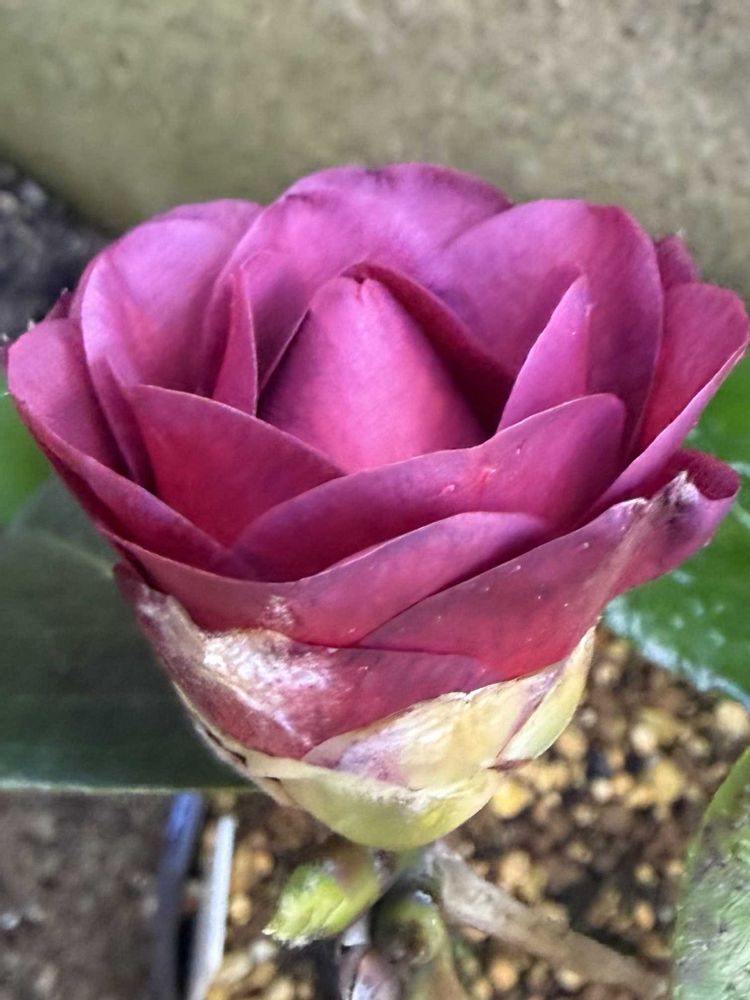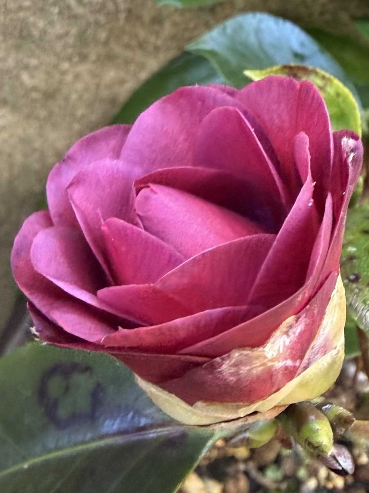 椿・至宝💜確か、お迎えしてから3年は経ったかな❓開花途中の落花ばかりで、なかなか上手く咲いてくれないコがいよいよキレイに咲きそうです✨