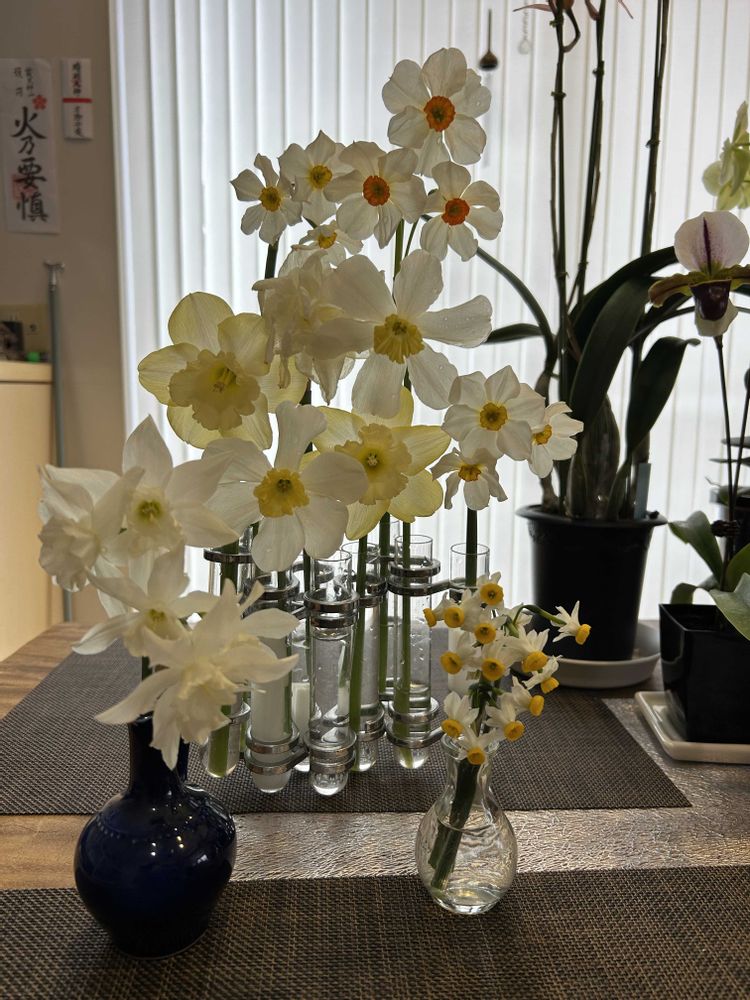 混み合ってくると葉っぱばかりとは聞くけど…うちは混みあってるのに咲いてる!日本水仙も多種類だからね!