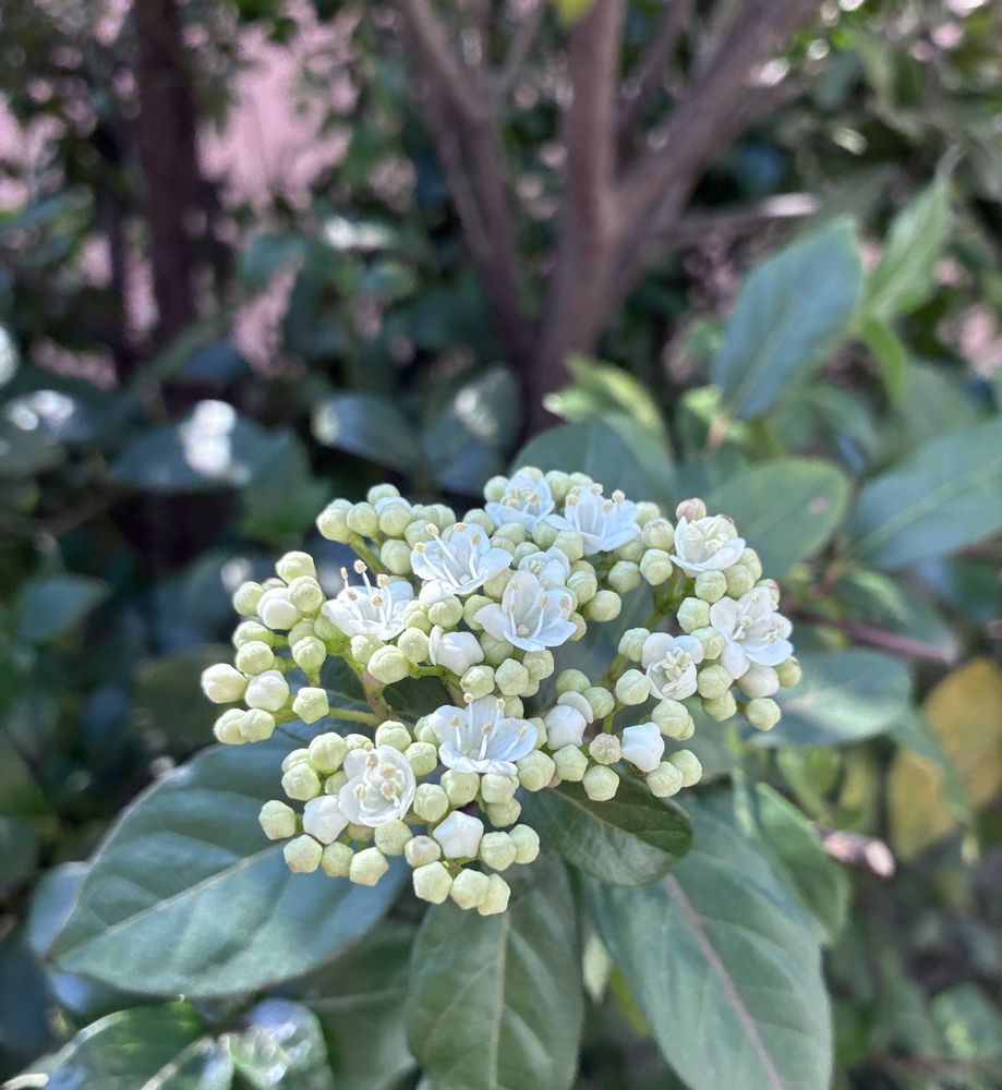 ①ビバーナムティヌスが咲き出した!おしべのレーダーをぴんと伸ばして💚