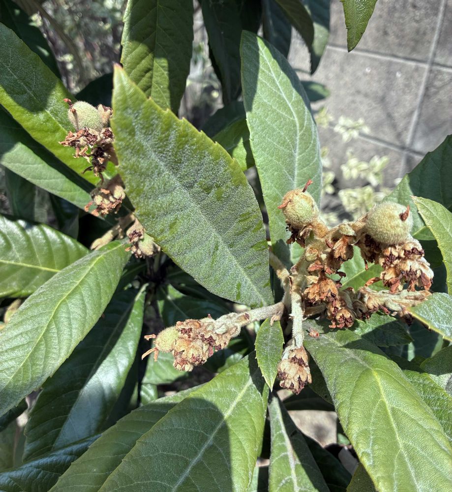 ②気づいたら枇杷の実が膨らみ始めていた。去年よりも花がたくさん咲いてるな〜〜と思ってたら、もう実が膨らむなんて!