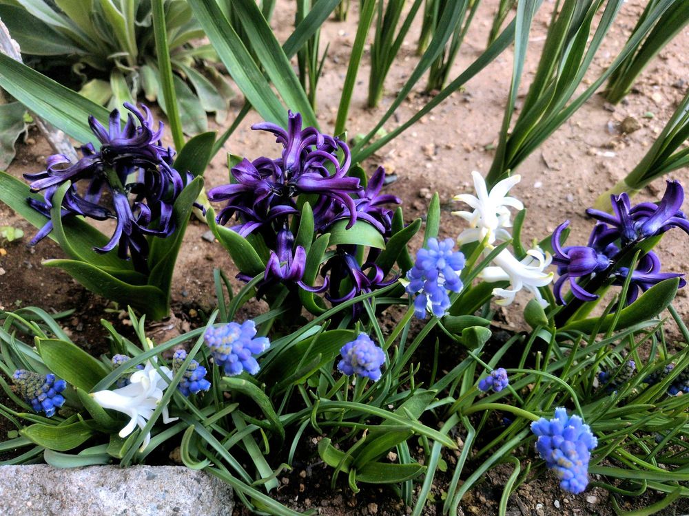 数年前に買ったヒヤシンスと、分けてもらったムスカリです。とってもいい香り✨️
