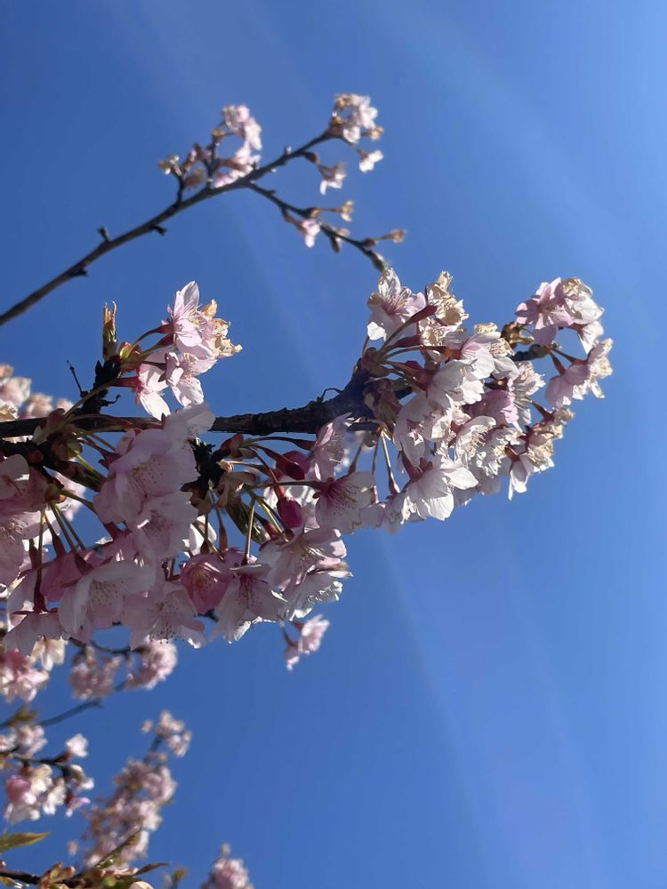 河津桜の濃いピンクが青空に映えて綺麗!私も春を撮りに行かないと!!