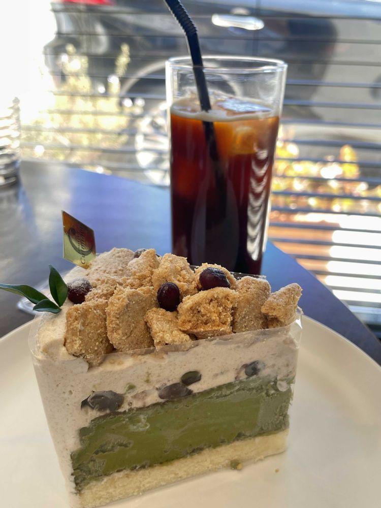 ⑤ 松阪市内の🍰パティスリーキュルミネにてカフェタイム「かのこ豆ときな粉クリームの抹茶バスクチーズケーキ」がめっちゃ美味しかったです😋