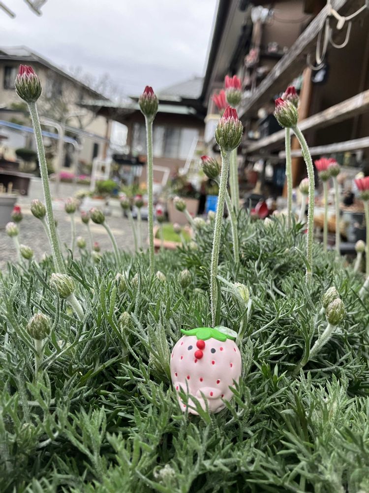 ちょこんと白いちご🍓チャン、お花が咲くのが待ち遠しいね꒰ঌ(๑≧ᗜ≦)໒꒱⋆⸜♡⸝⋆