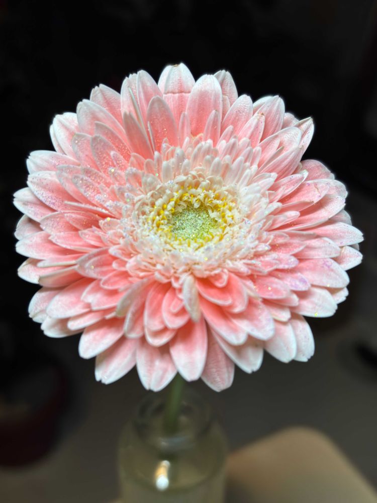 お花はガーベラでしょうか?あたたかくて優しい色合いで素敵ですね✨