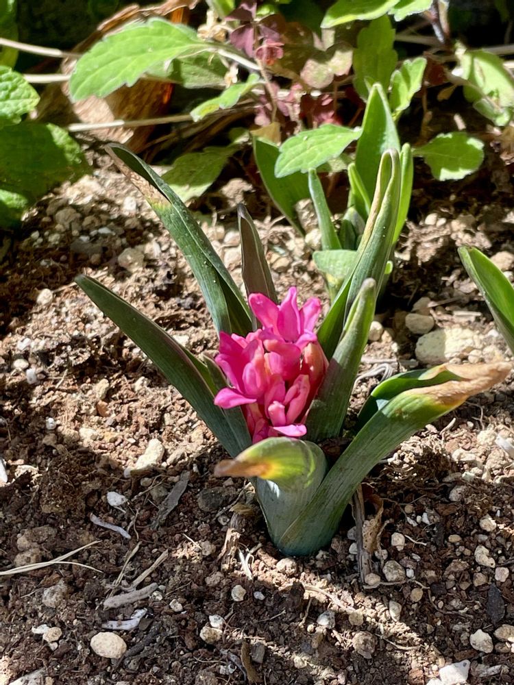 葉っぱのお布団暖かく…早く咲く🦆さん