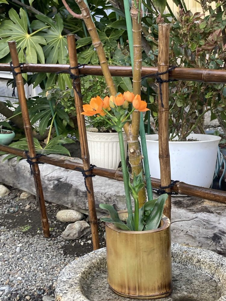 🌼 オーニソガラムと竹鉢🌼