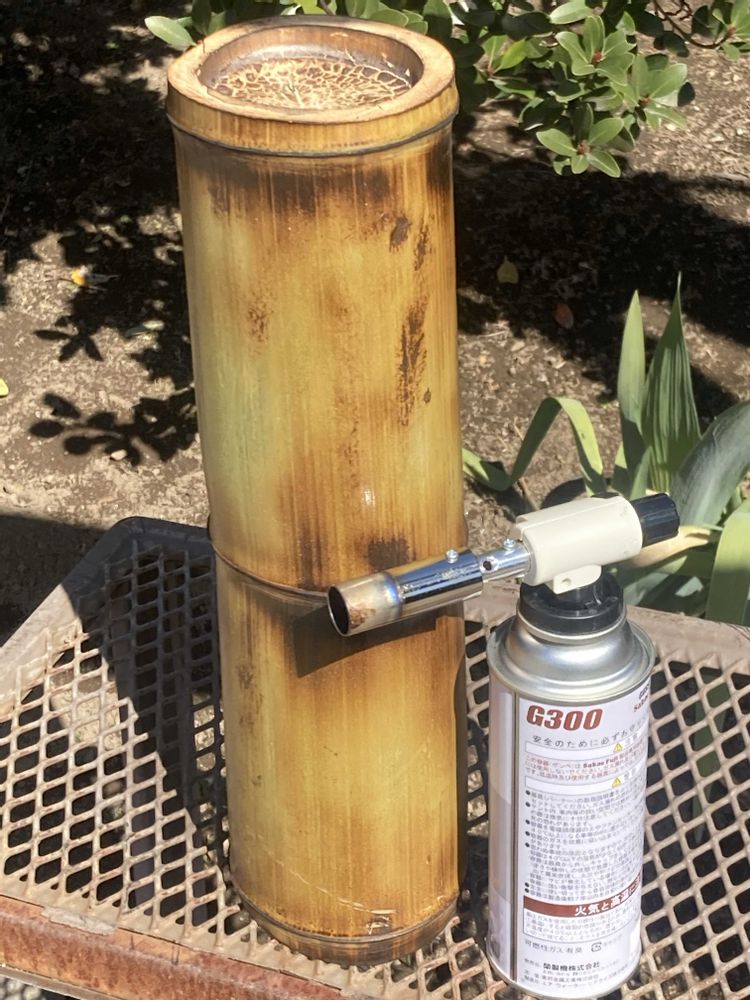 切り出した竹をガスバーナーで
