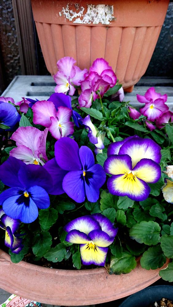 名前無しのパンジーですが、とにかく花が大きくて、見応え十分なパンジーです😆🎵🎵