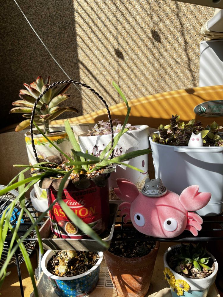 セダムたち、背が立ってきてるのでもう根っこついてきてるっぽい👍