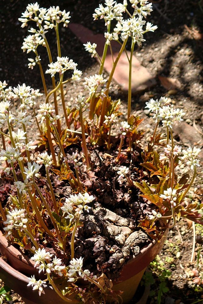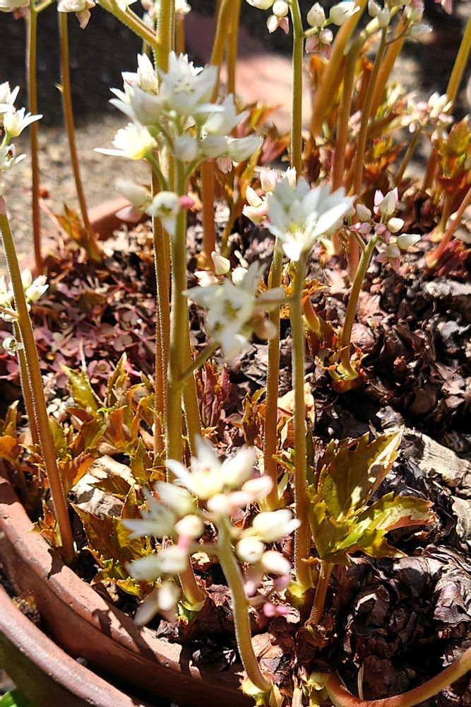 日が当たる様になってきた庭 いつの間にか花が咲き葉っぱも出てきてました😀😱🙆