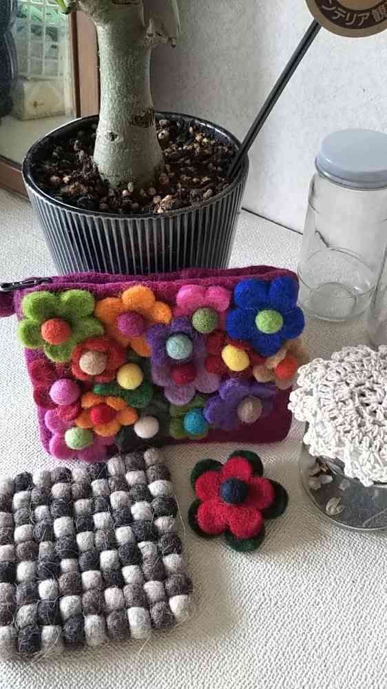 お花柄の可愛いフェルト地のポーチ、ブローチ、コースター
