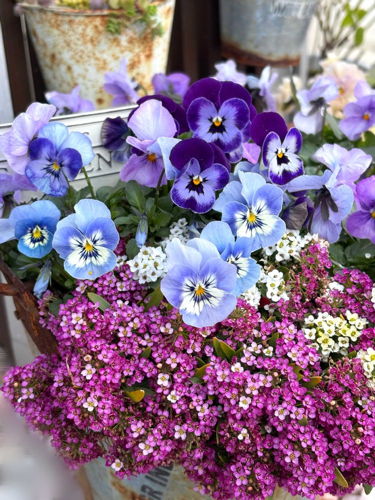 🩷のアリッサムと紫系のパンジーの組み合わせが可愛いで