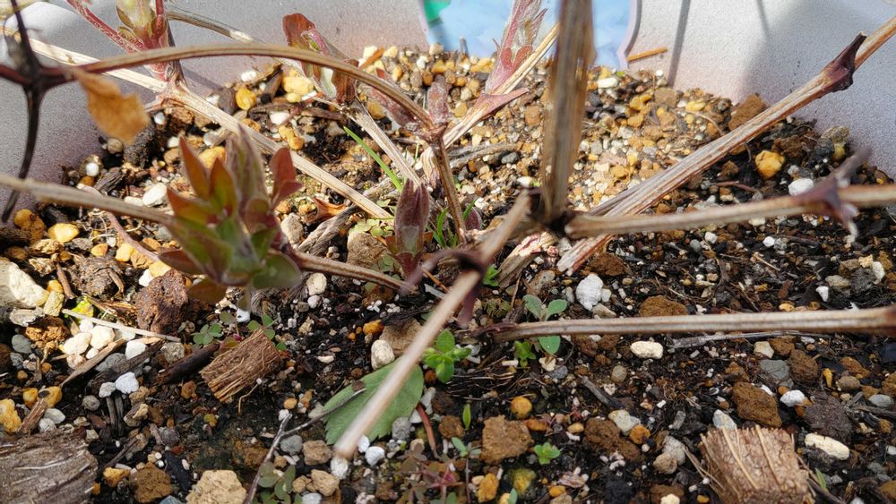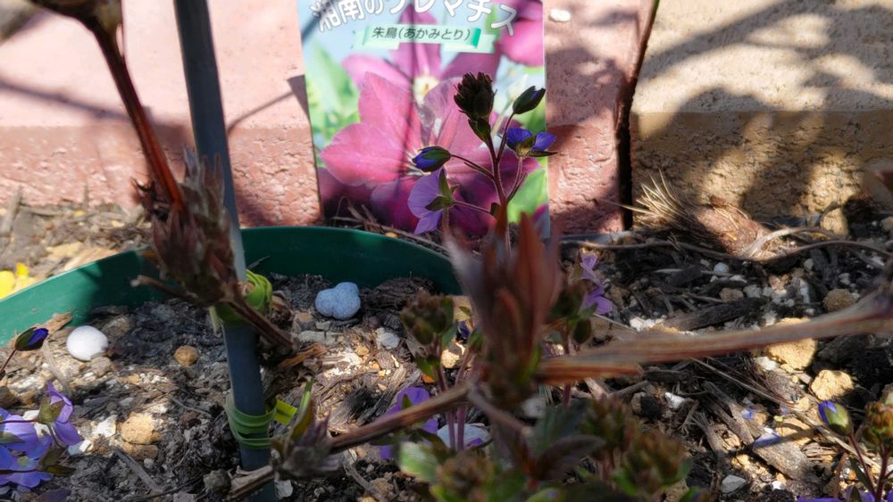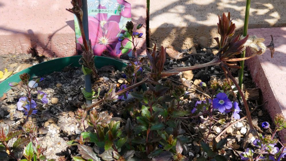 ようやくのんびり出来てお庭を見ると、1年生苗だったデニーズダブル(薄紫色)ももう2年目となり、最初のちびっこ状態を思えば随分枝が長く育ってきました(0.7mくらい)