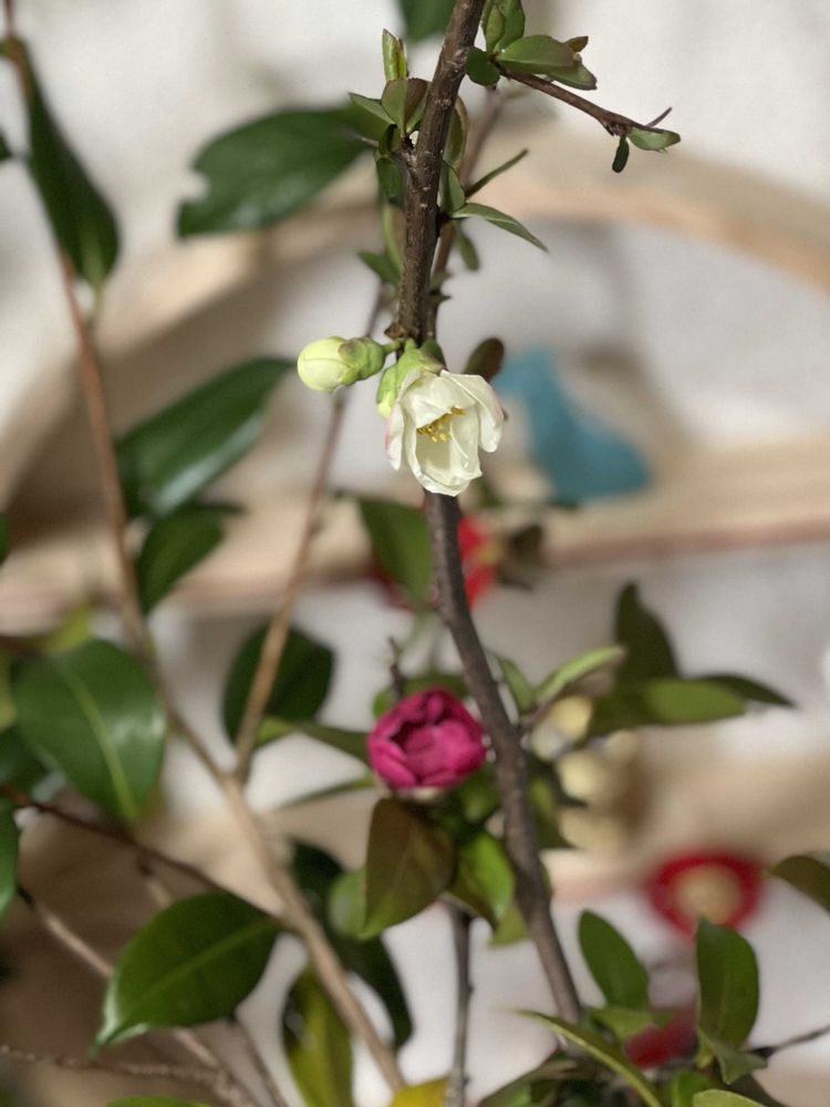 2枚目は、主人の実家から切ってきた木瓜の枝