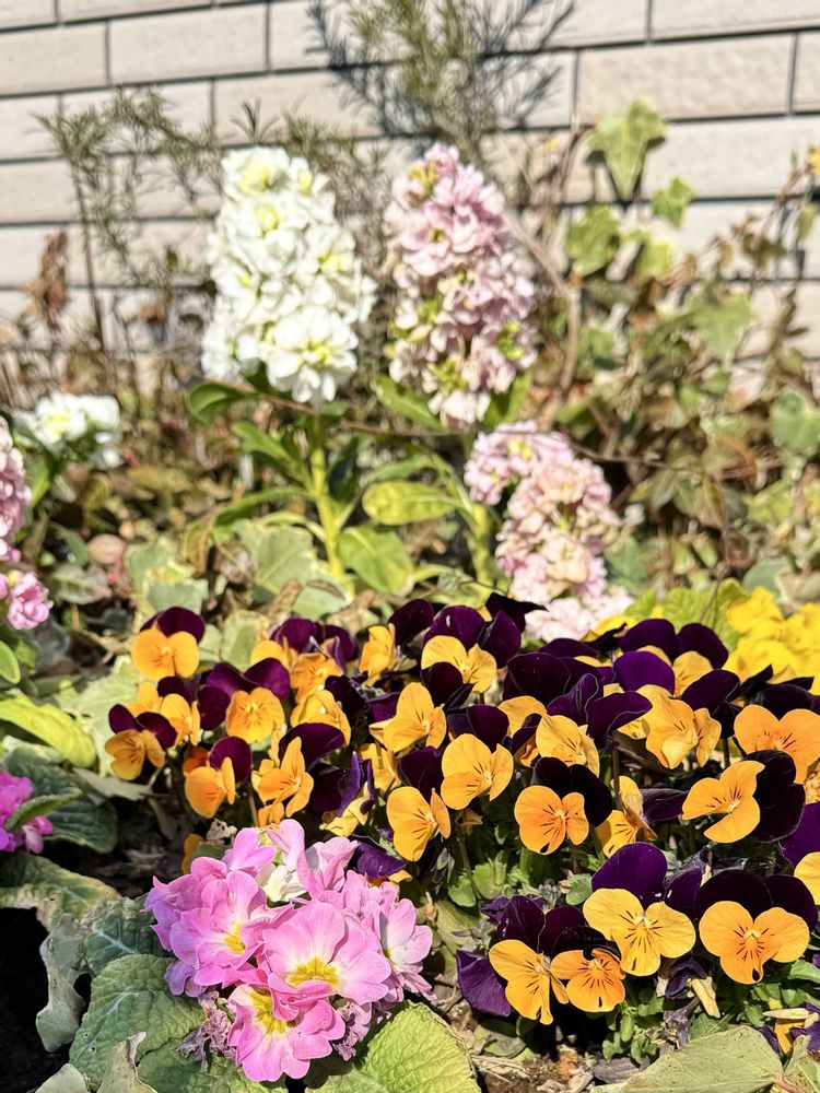 突然の雪にも見舞われて少し色が悪いけど、ストックさんも、ビオラさんも元気です╰(*´︶`*)╯♡