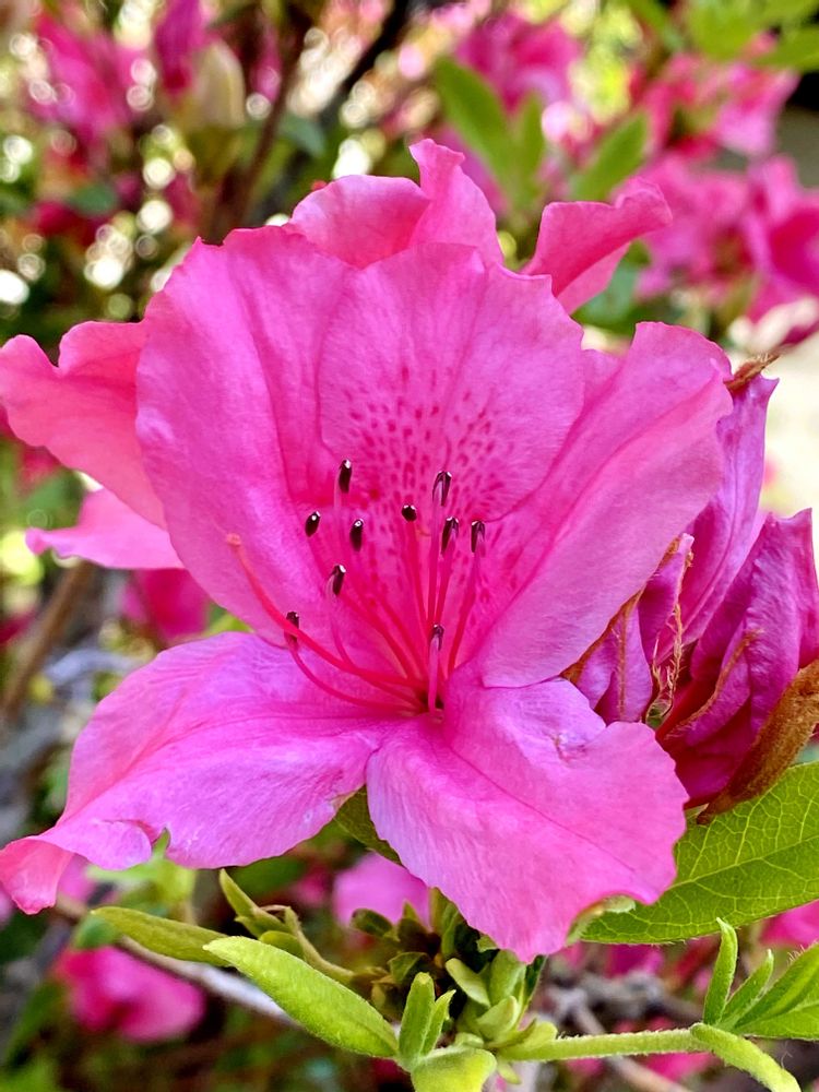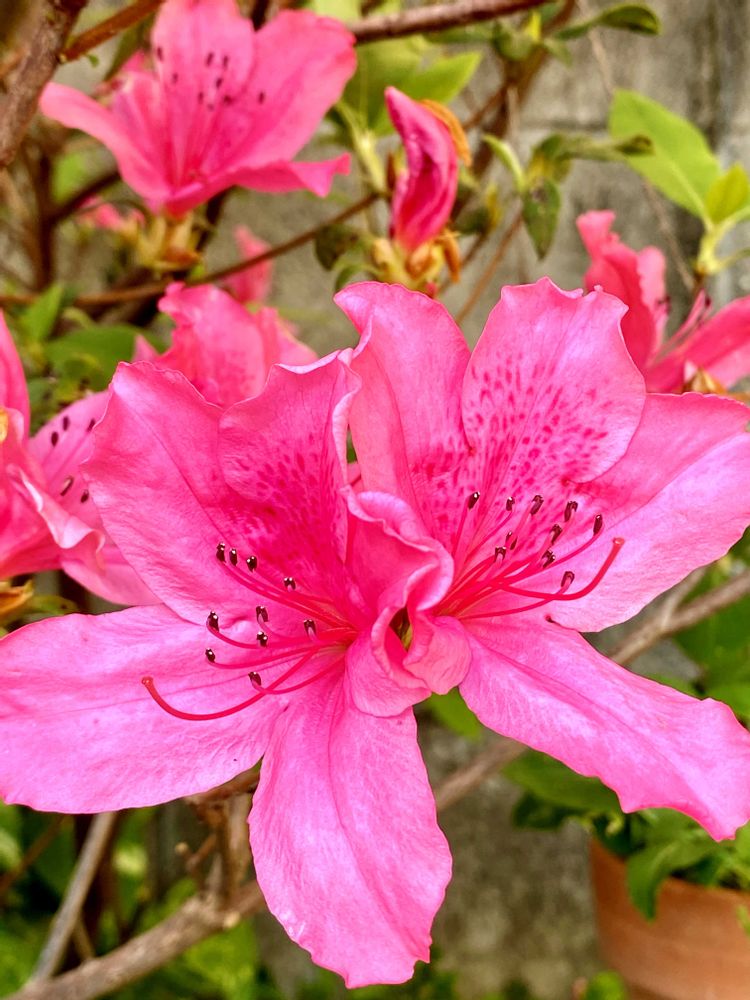 2月26日に一番花を見つけてから…あっという間に西側花壇のツツジが鮮やかなピンク色🩷に染まりました💕🌿🌸🌿🩷🌿🌸🌿
