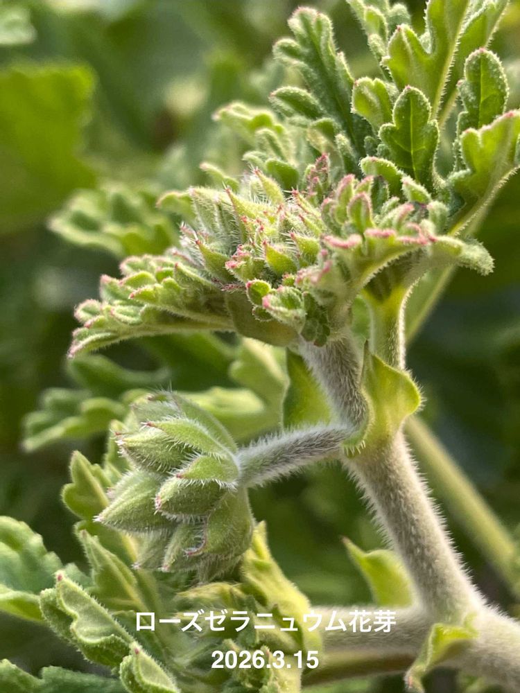 ローズゼラニウムは脇の花芽を挿し芽しました。ベランダでの冬越しが無事できました🤗