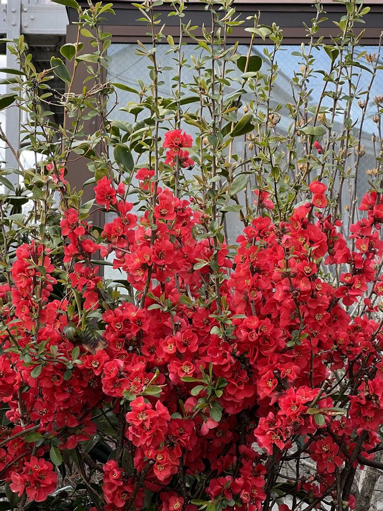 真っ赤な木瓜のお花もいいね👍