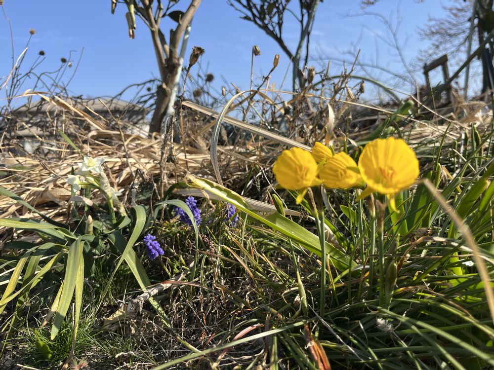 チビのスノーフレークさんかな?😳原種水仙のペチコートさんも咲き出した😊