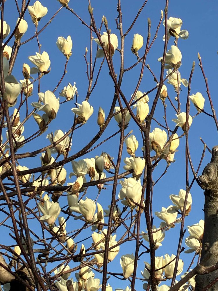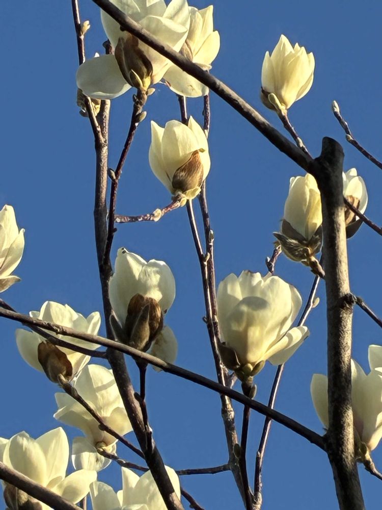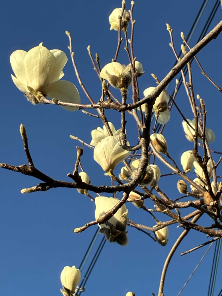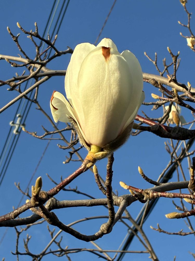 今日は良いお天気で、「ハクモクレン」のお花がパッと咲きました。📸🌼🤗😄👌