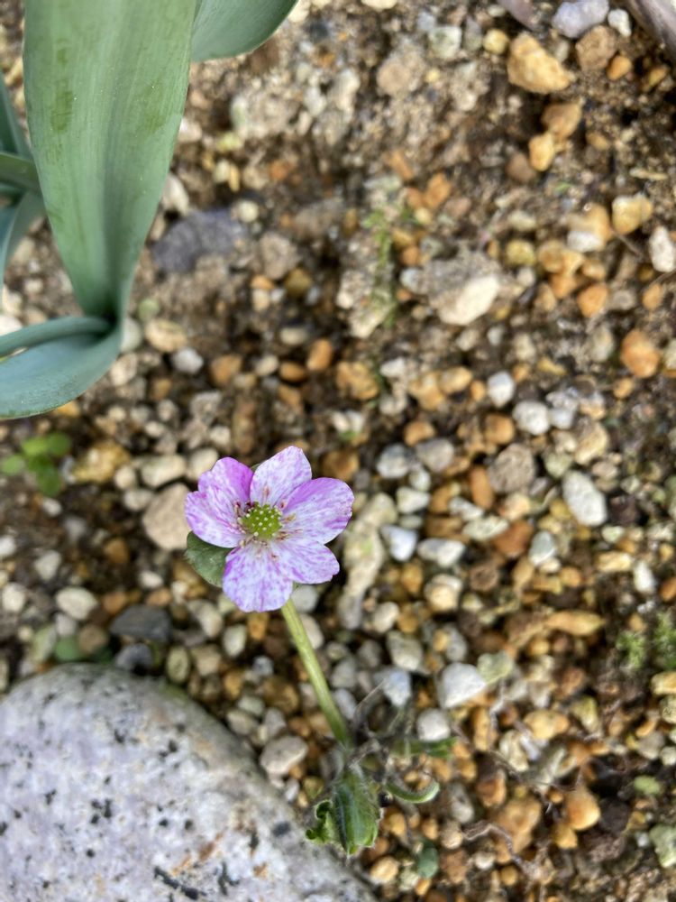 もうダメそう〜と大地に託して地植えした雪割草。ひとつだけお花見せてくれました🌸かわいい🩷