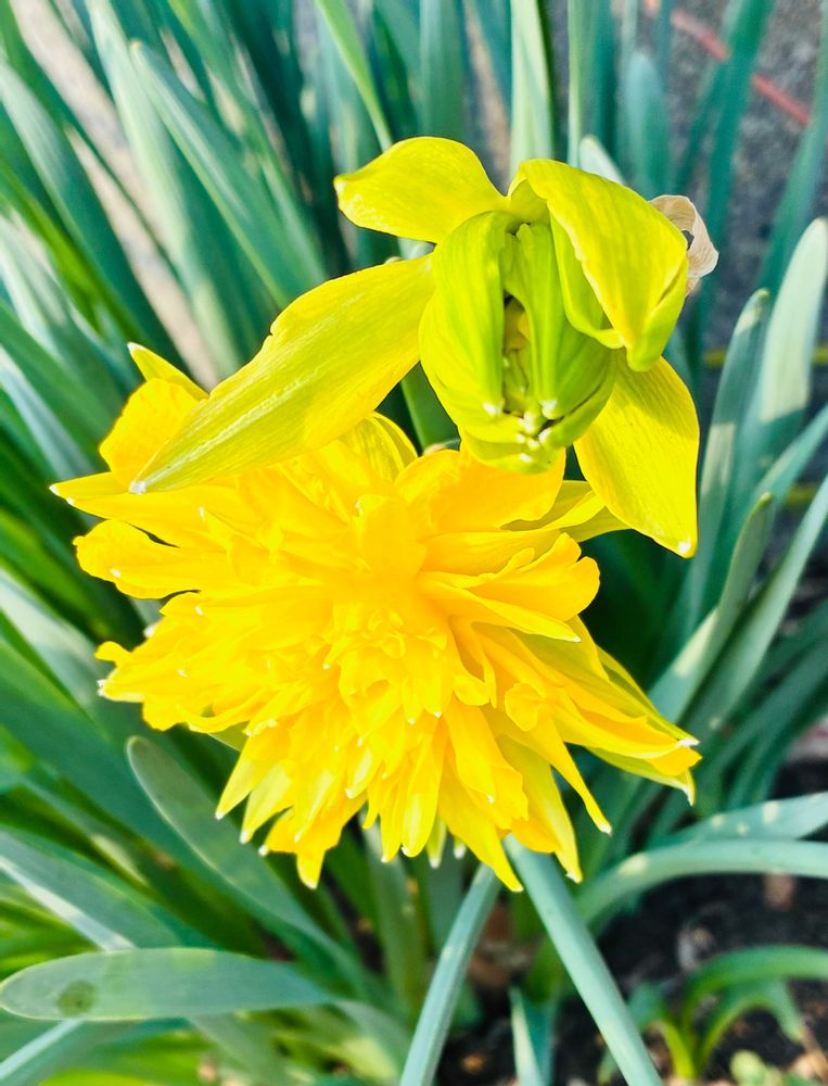 外出先の玄関先に、八重咲きスイセン💛の様です〜綺麗でした☺️🥰