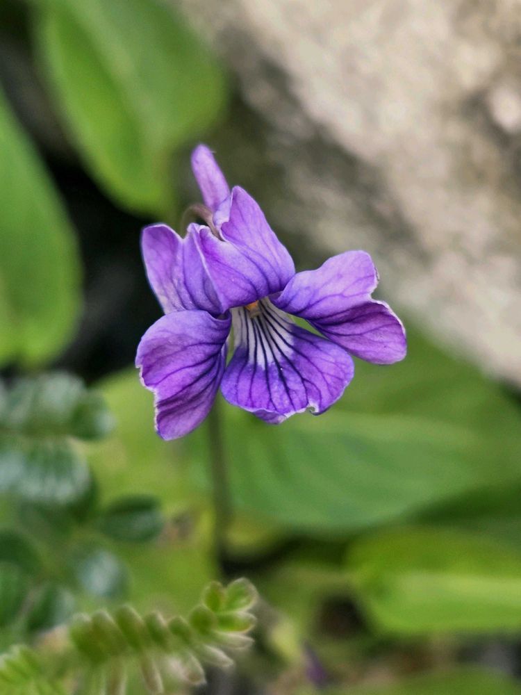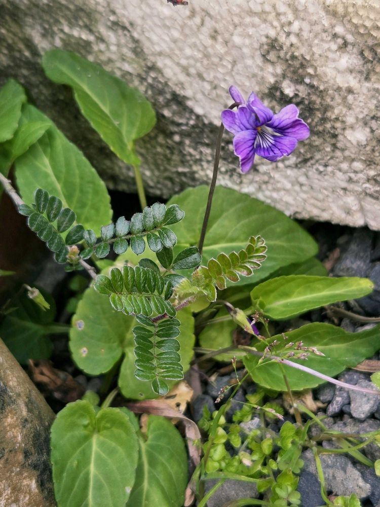 石と石付近から咲くスミレ