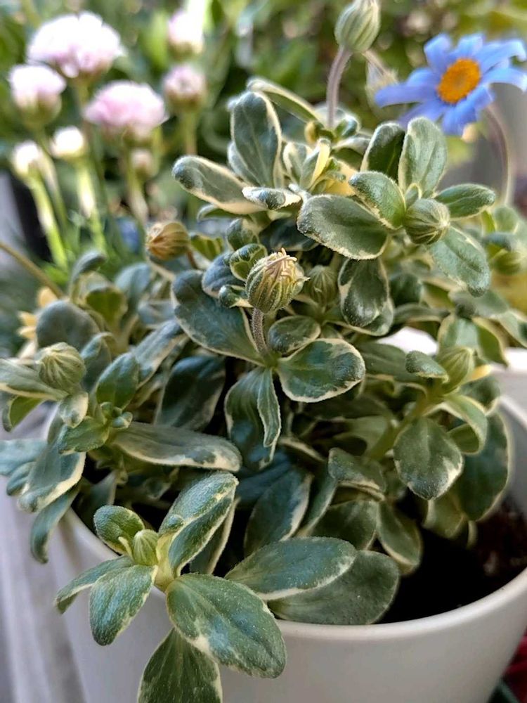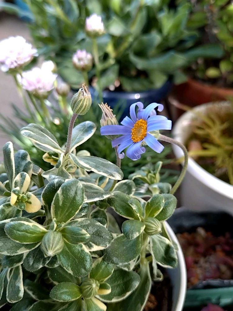 昨日花屋で見つけたブルーデージー💙✨昨シーズン育てて可愛くて🥰今シーズンも見つけたら買うリストにありました😊🌱💕斑入りの葉っぱも明るくて好きです💚✨蕾がたくさんあるのでこれから楽しみですヽ(=´▽`=)ノ💙