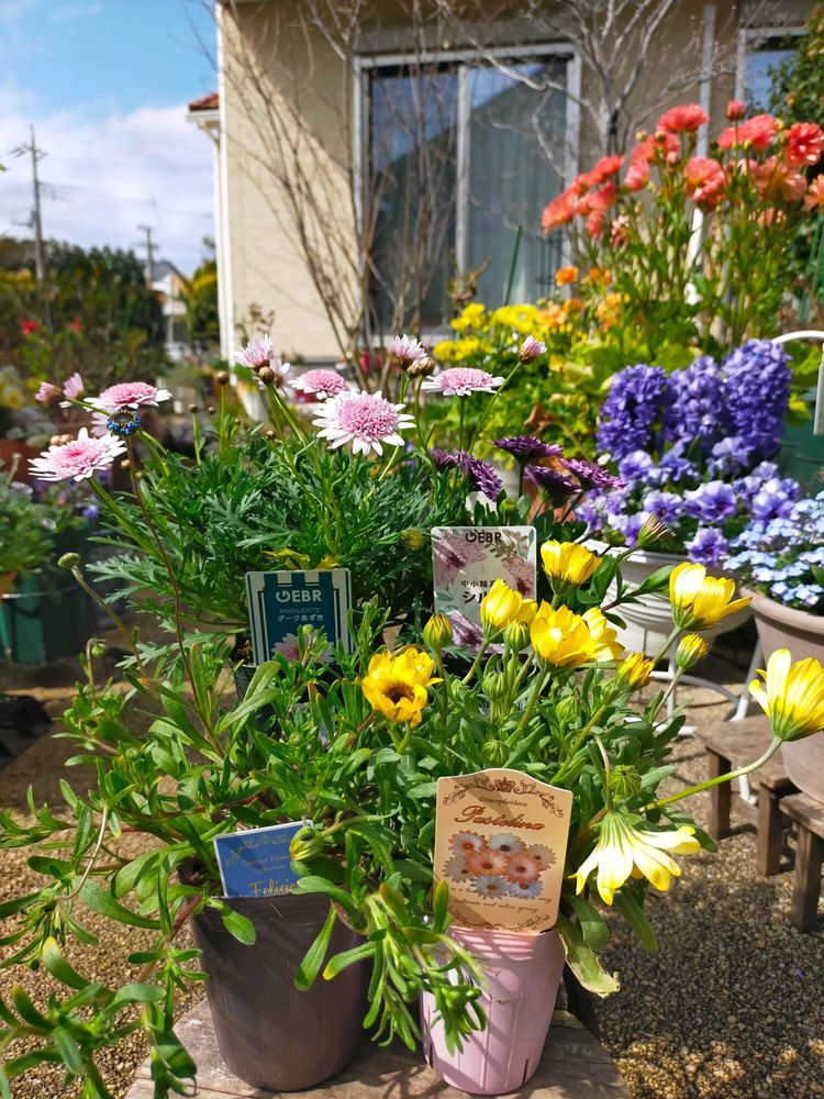 ずっと育ててみたかった、ゲブラナガトヨさんのマーガレットやオステオスペルマムがいっぱい💖