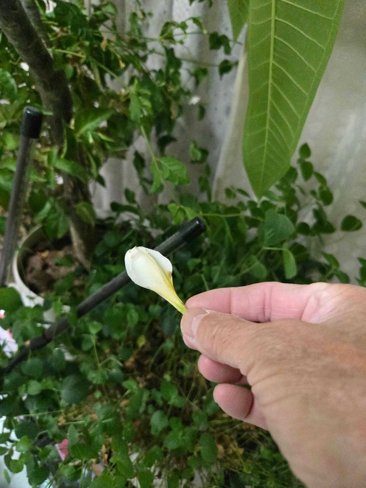 プルメリアの蕾がだいぶ大きくなって開きそうなんだけど、ひとつ開花前に落ちました。😭