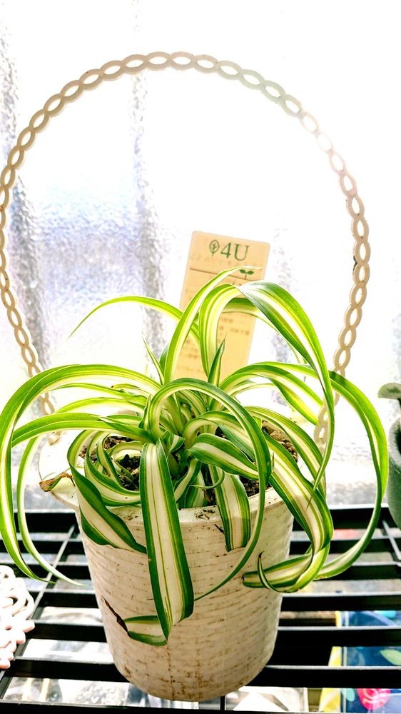 同じ三ツ星品種モニターのオリヅルランで、こちらは、少し葉っぱも成長しているようです😉‼️