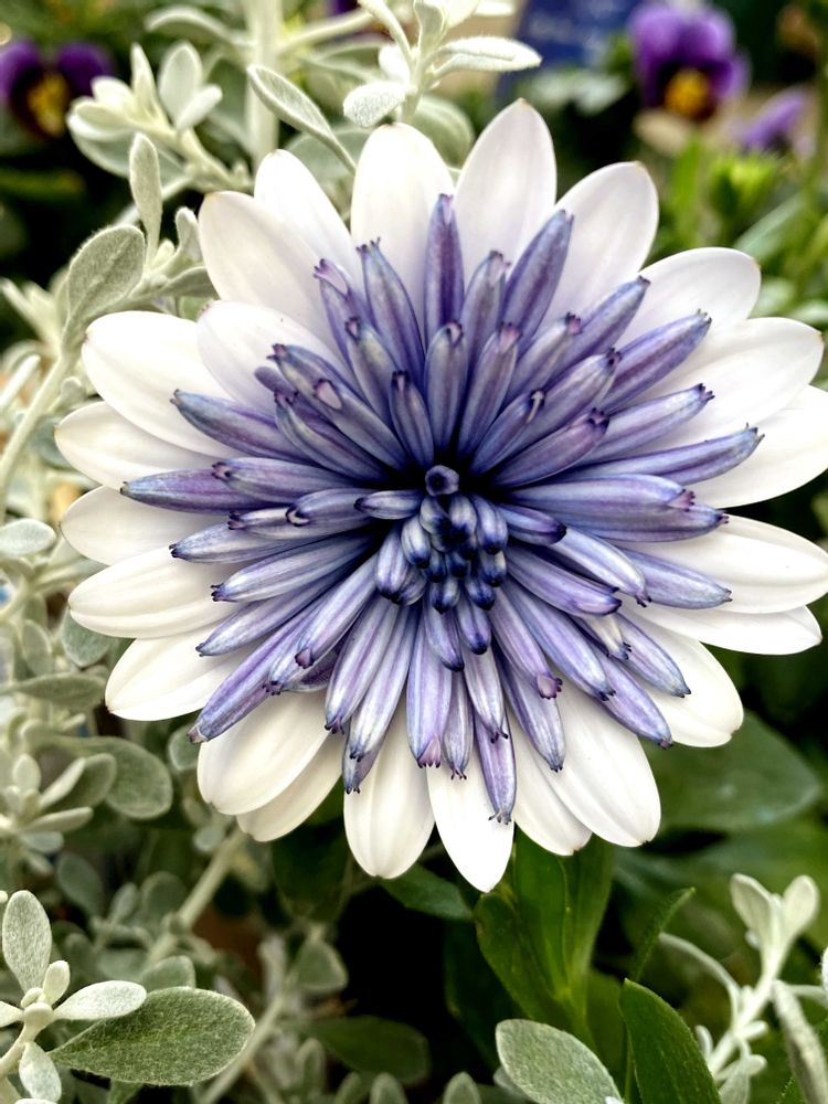 今日は旅行に行く前に慌てて求めたオステオスペルマム スチールブルーさんです