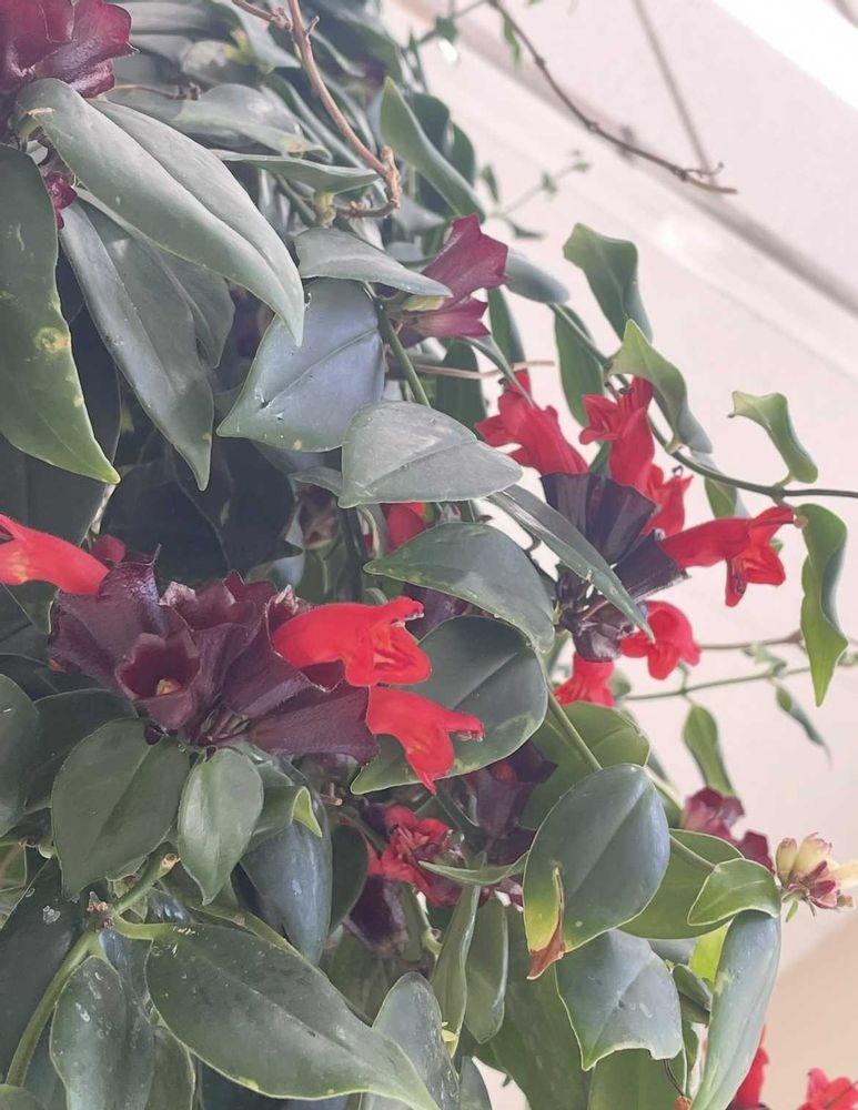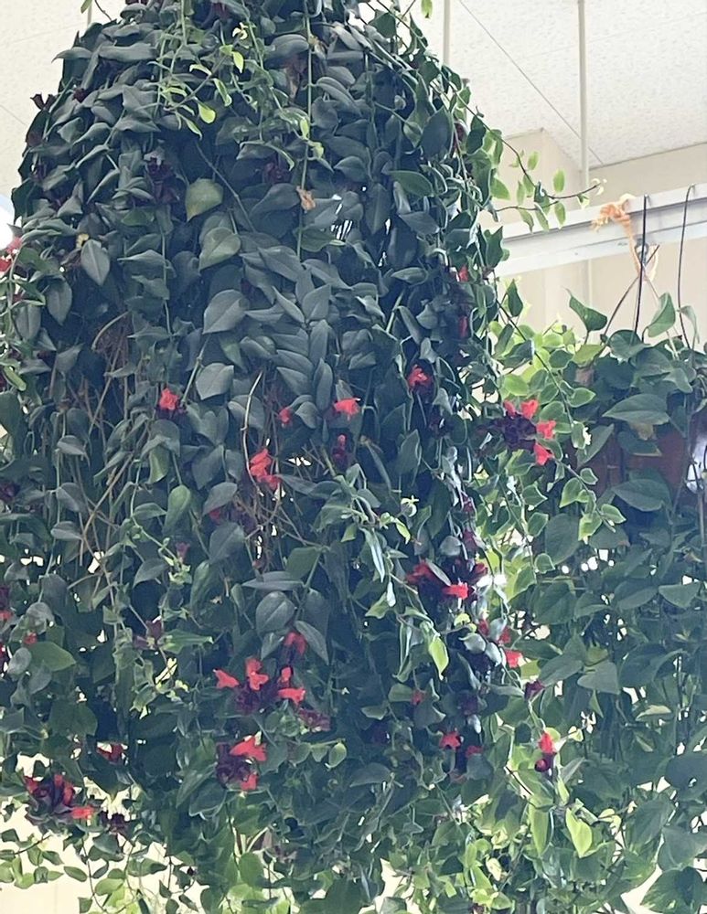 天井から ぶら下がっている赤い花 ‼️