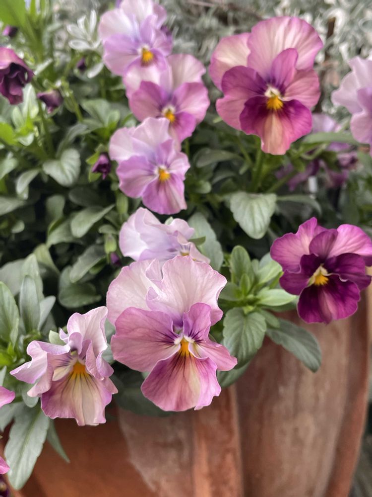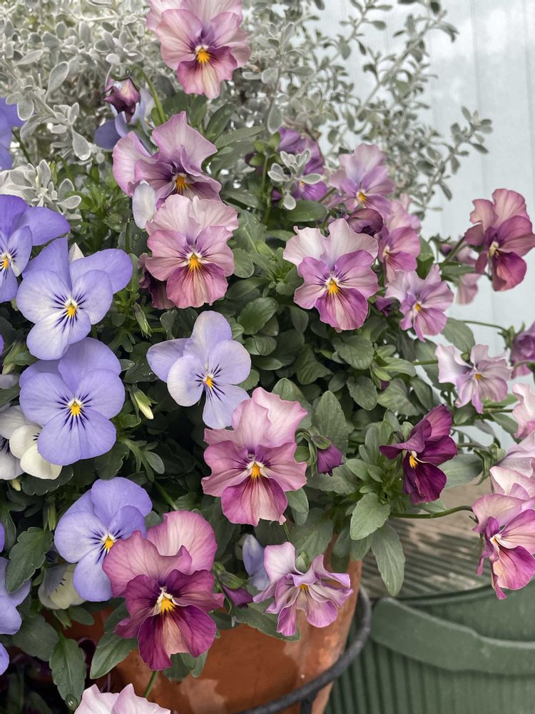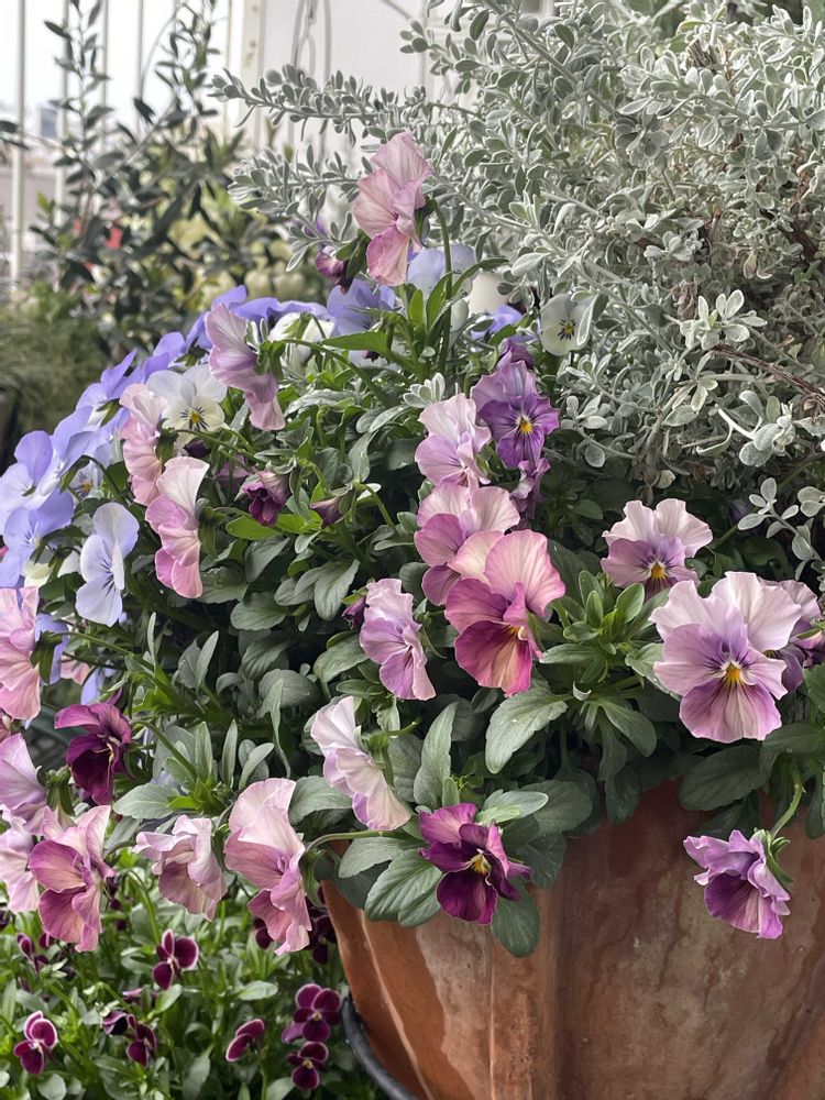 アンティークパステルビオラの2種類寄せ植え🩵🤍💜