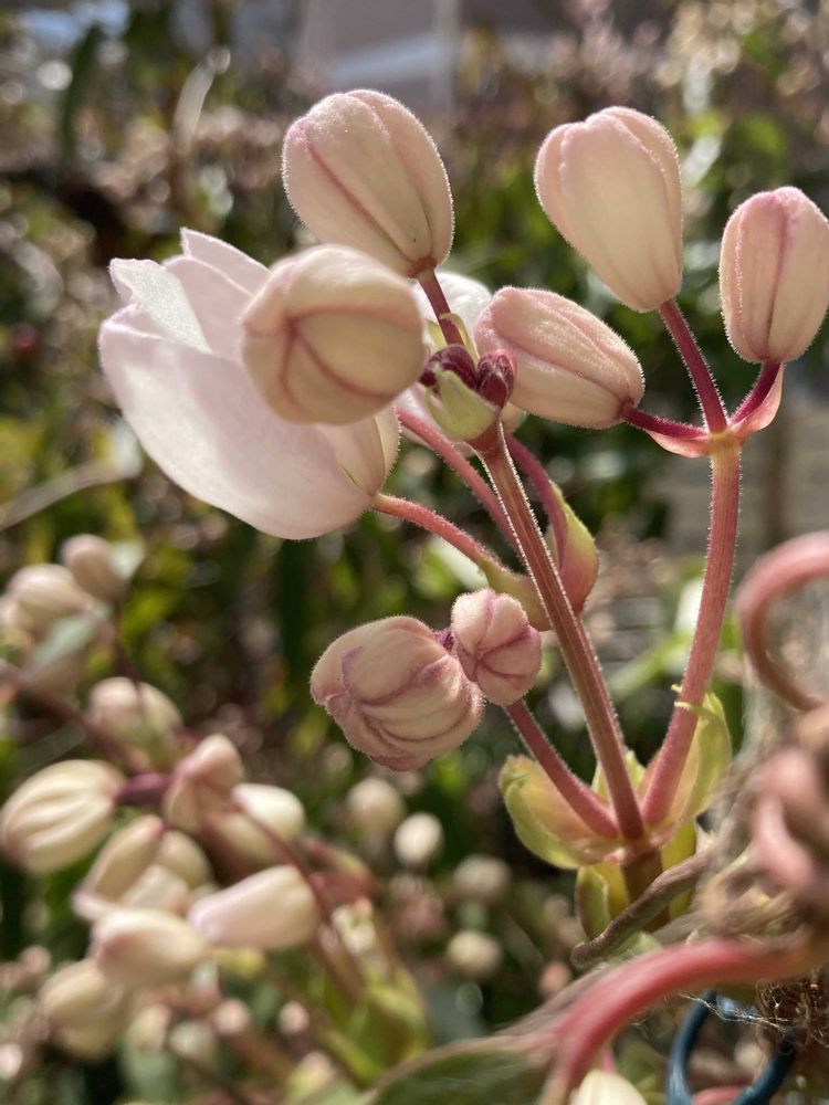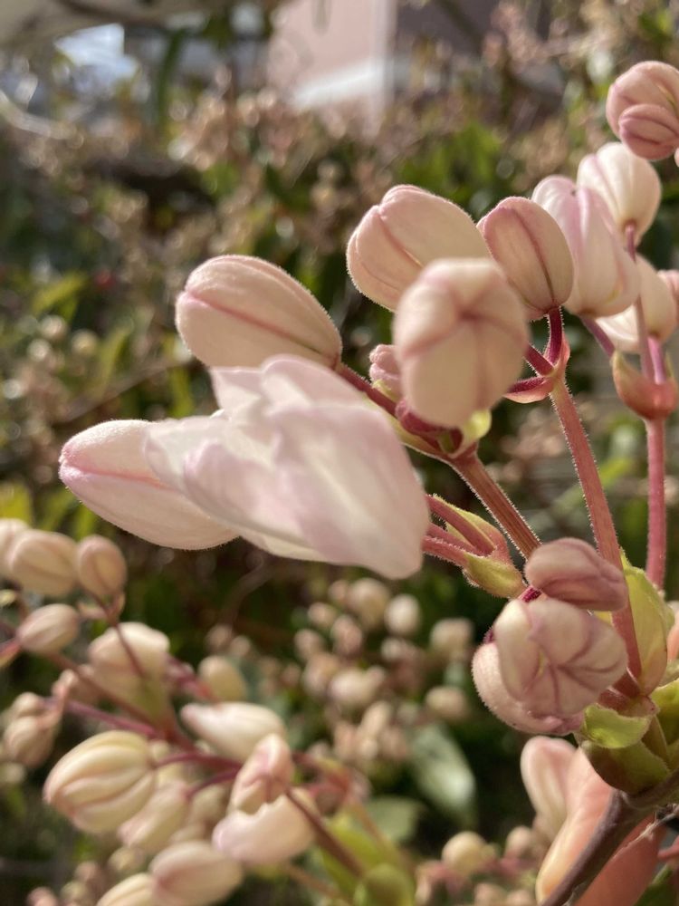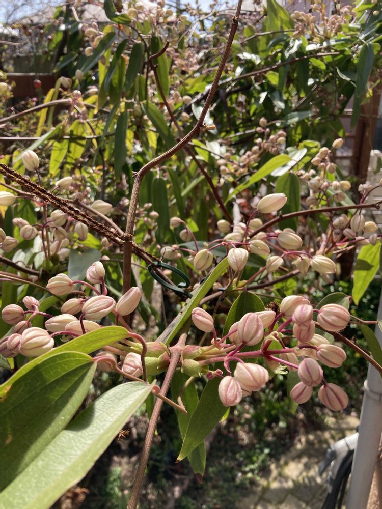 クレマチス・アーマンディーが咲き始めました。パーゴラにかけたツルが伸び伸びと伸びて、今年はさらにたくさん咲きそうです。