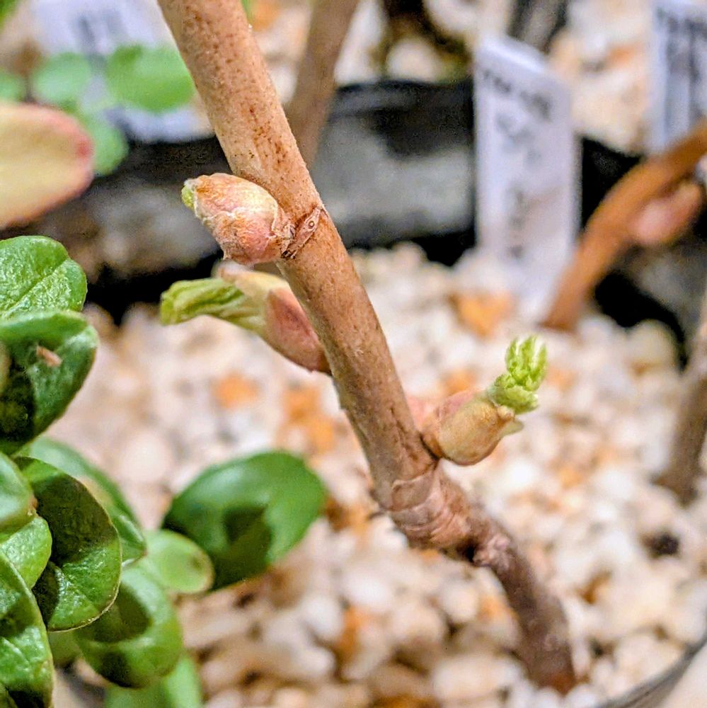 雪の下で折れていたカシスの枝を挿し木して玄関においてあったのですが、暖かさで芽がでてきました🍀